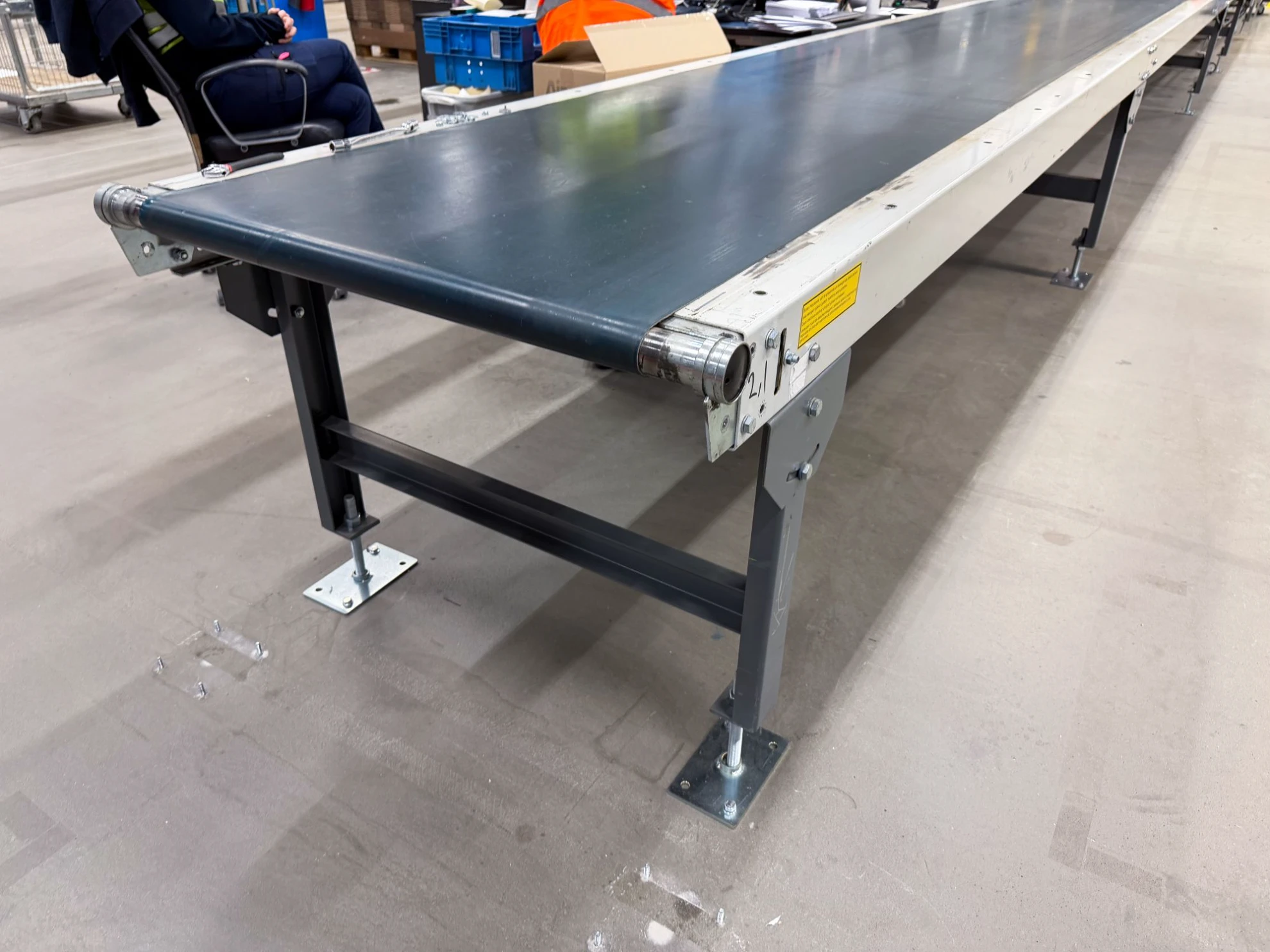 Denna kraftfulla bandtransportör från Beerepoot sträcker sig över hela 14,2 meter och erbjuder en rejäl bandbredd på 800 mm. Den är specifikt utformad för att hantera stora volymer och tyngre gods, vilket gör den till en idealisk huvudlinje för omfattande lager- och logistikflöden eller industriella applikationer. Med sin robusta konstruktion och generösa kapacitet är den en perfekt lösning för verksamheter som kräver pålitlig transport och högsta möjliga effektivitet i sitt interna materialflöde.