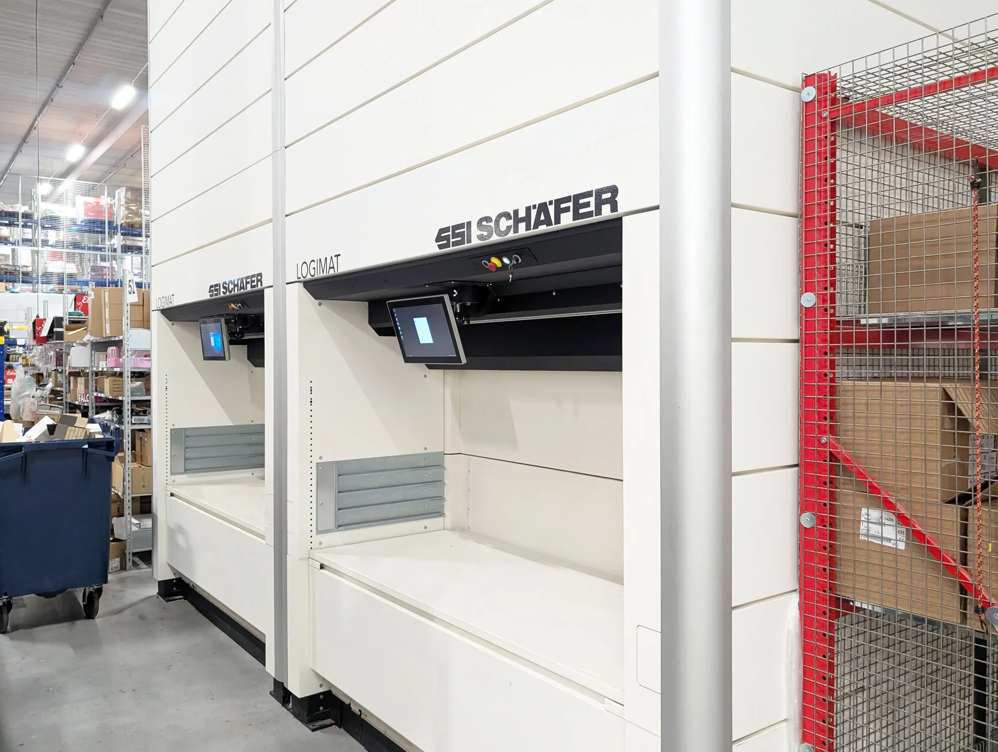 Hissautomaterna har dubbla öppningar på fram- och baksidan, vilket gör både inlastning och plockning enklare och mer flexibel. Det möjliggör att flera processer kan pågå samtidigt utan att störa varandra, till exempel när olika avdelningar hanterar plockning och inlastning.