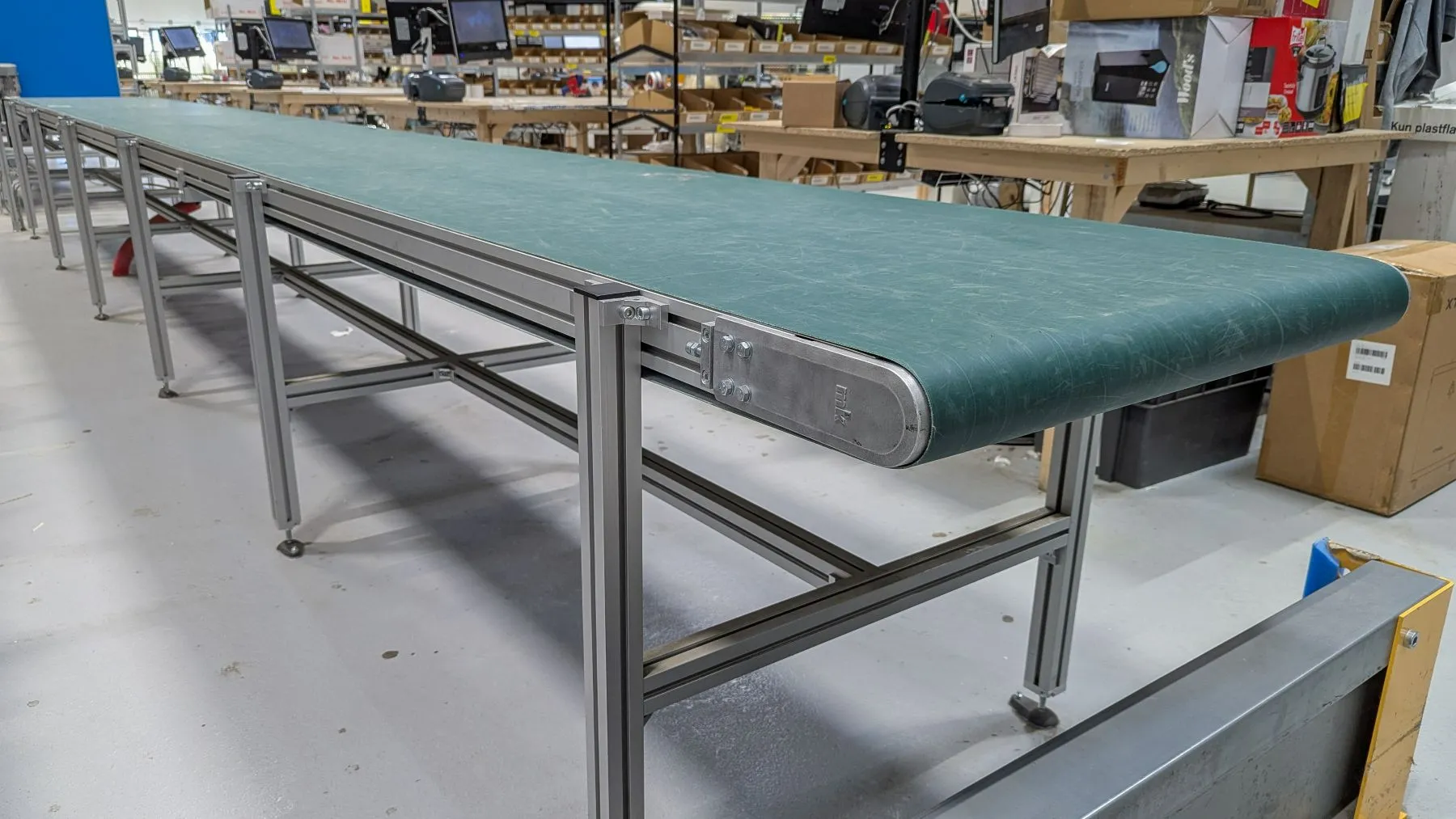 Packlinjen passar t.ex. utmärkt för transport av paket/gods från manuella packbord till utlastning, eller som en del av en enklare montagelinje i manuell produktion.