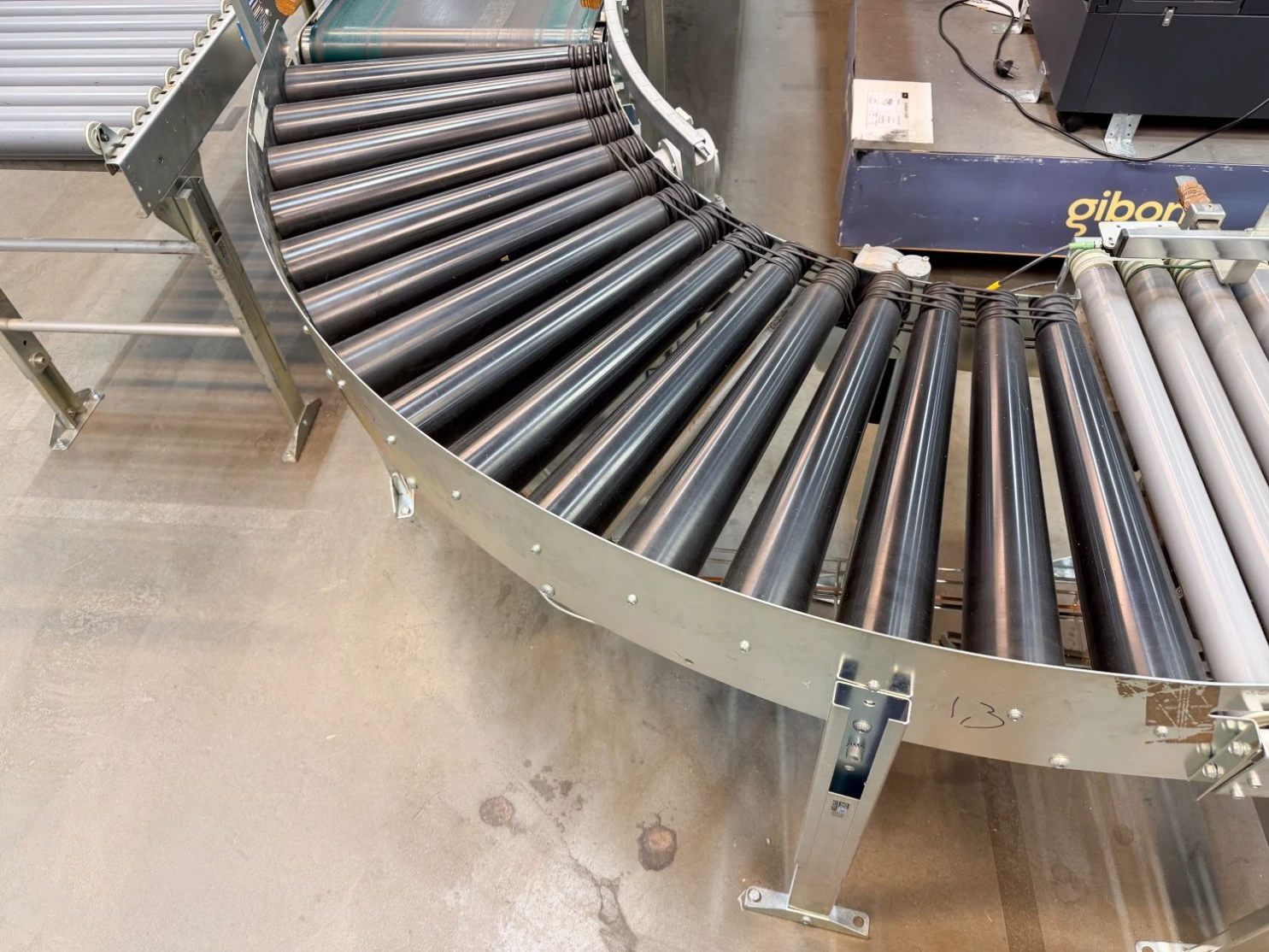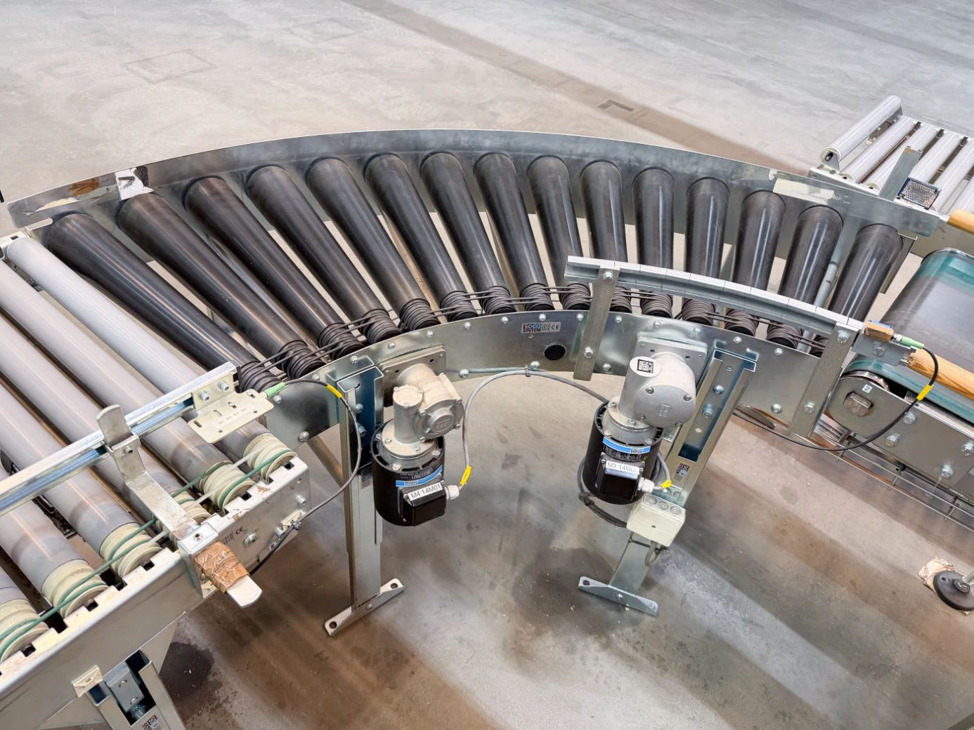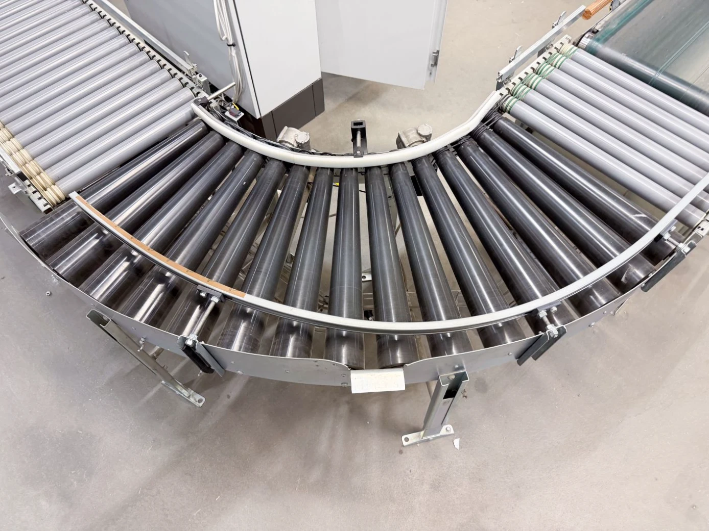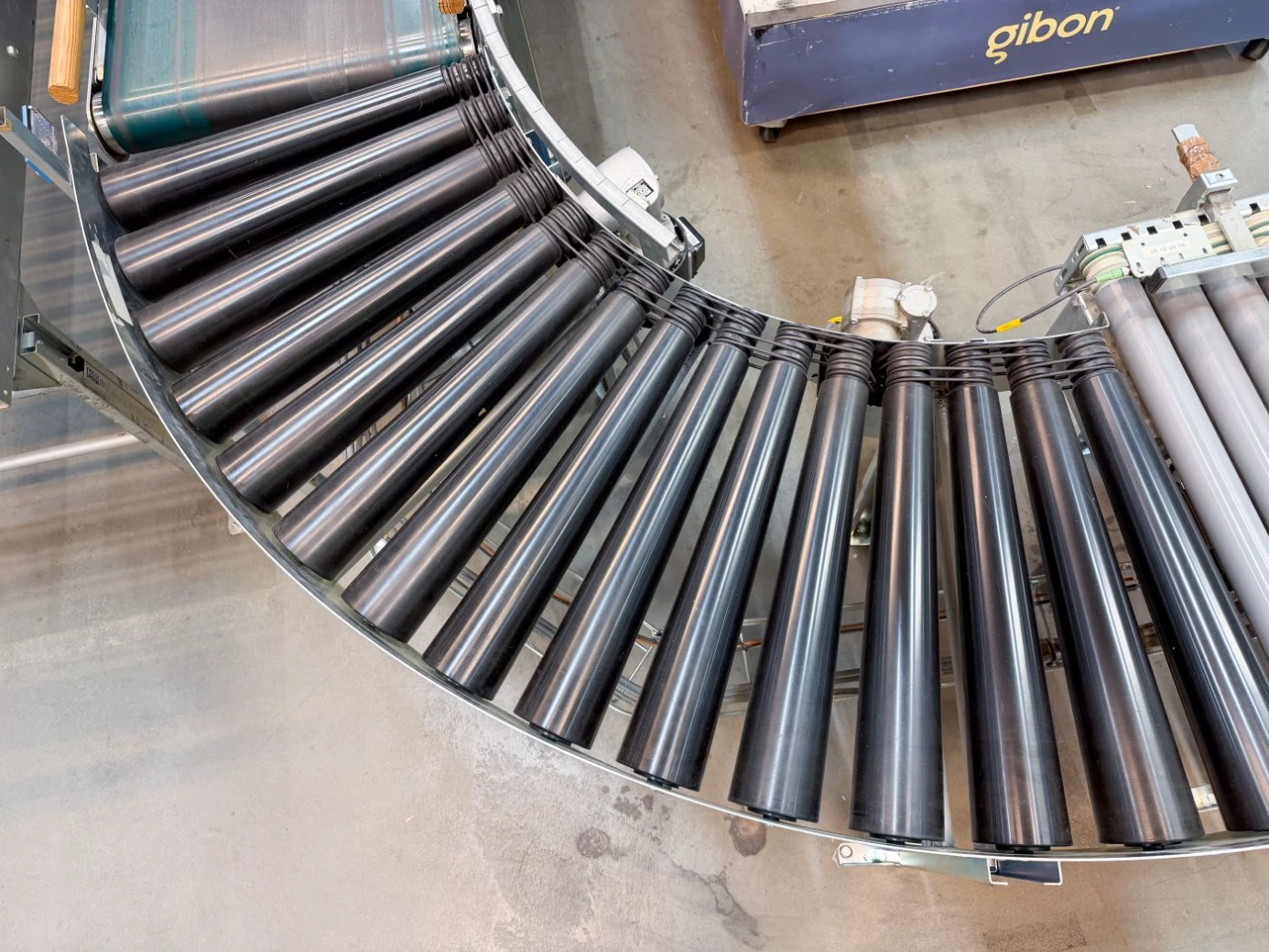 Kurvorna är motordrivna och säkerställer ett jämnt och kontrollerat godsflöde genom svängar utan att tappa kapacitet. De lämpar sig väl för kartonger, plastbackar och annat styckegods i automatiserade eller semiautomatiska system.