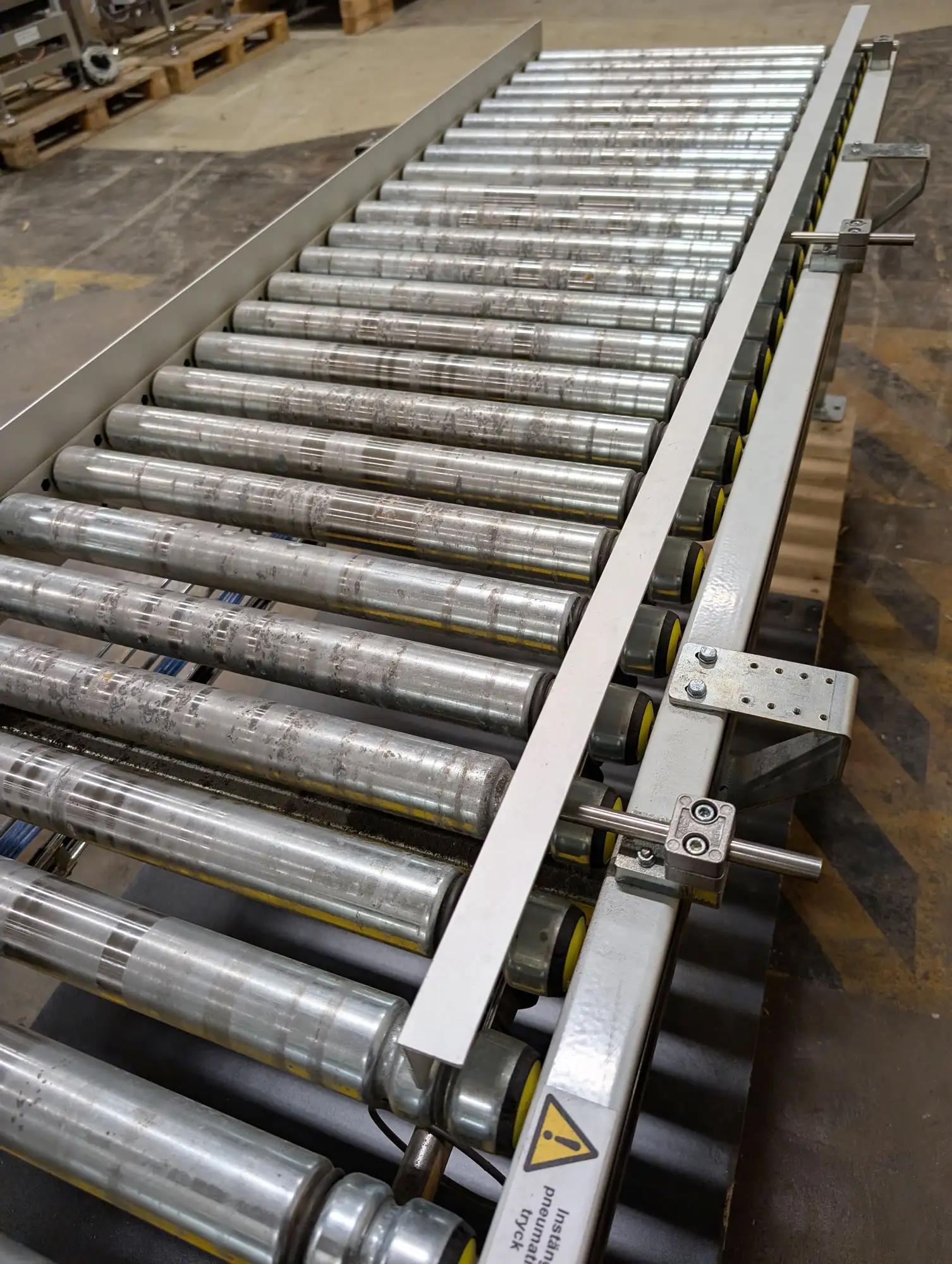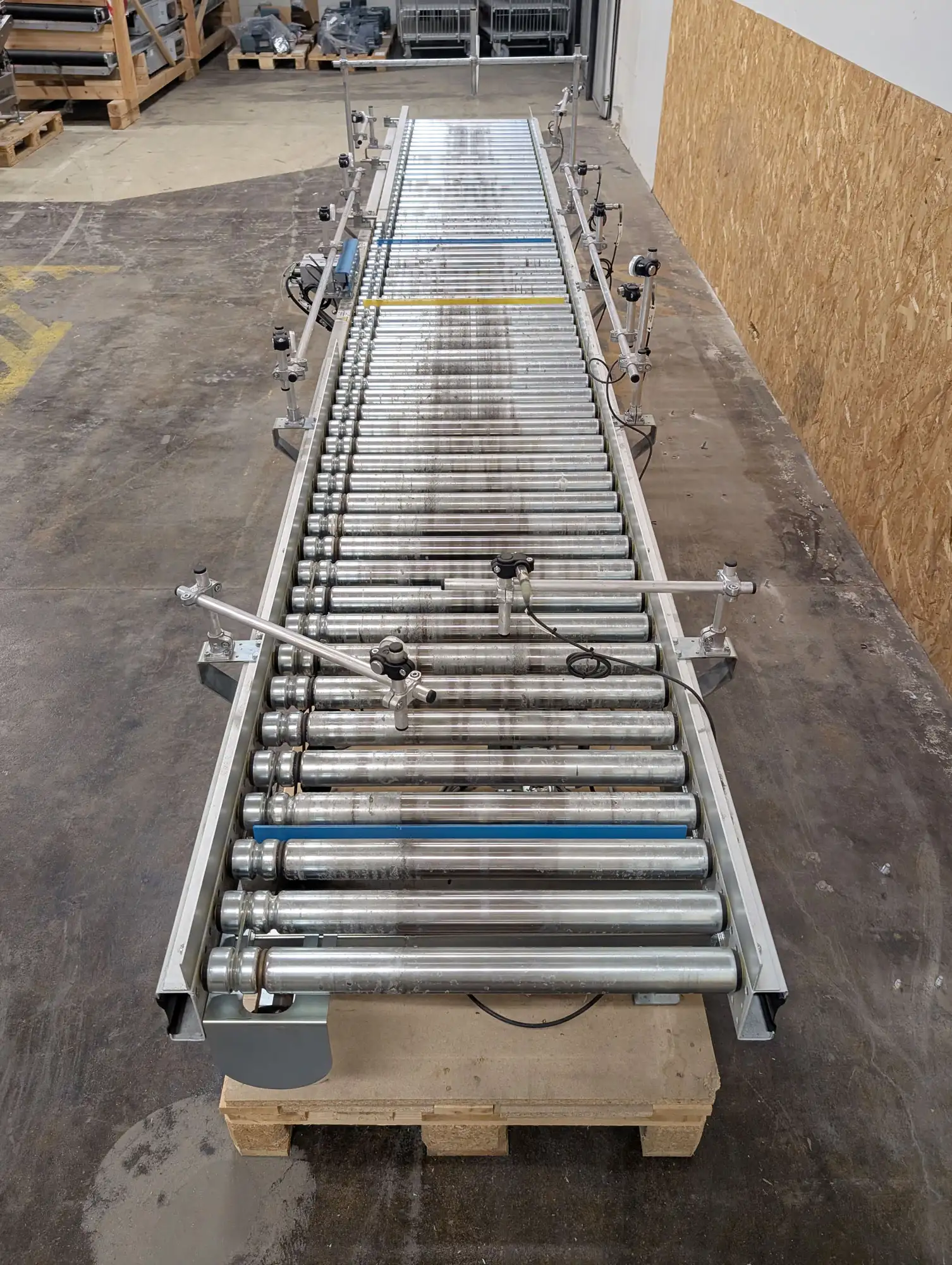 Dessa banor är drivna med längsgående axel och rundremmar, vilket gör dem mycket driftsäkra – en beprövad konstruktion som kräver minimalt underhåll. De tidigare bilderna visar hur rullbanan blir när man enkelt tar bort utrustningen som är påmonterad.