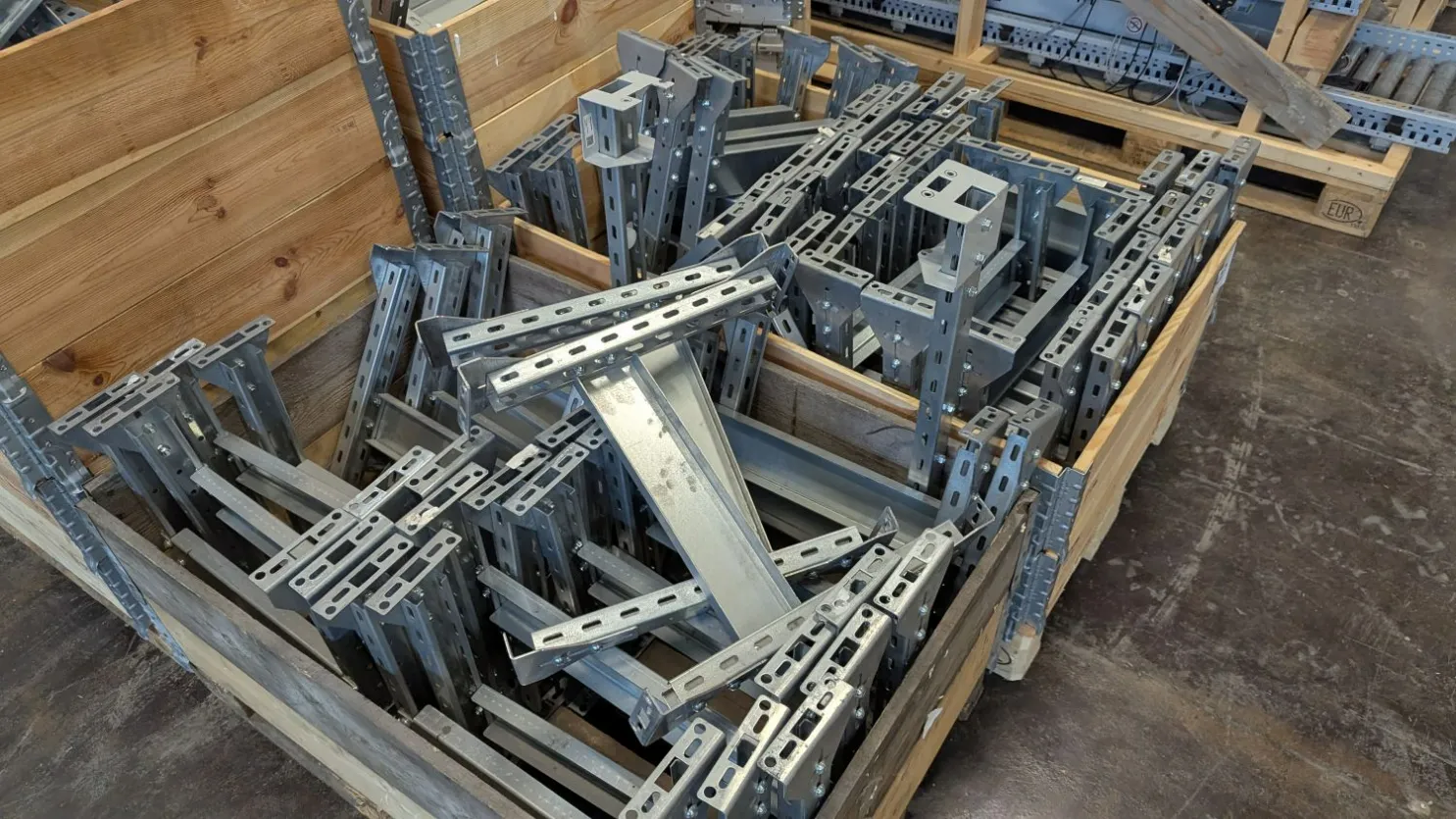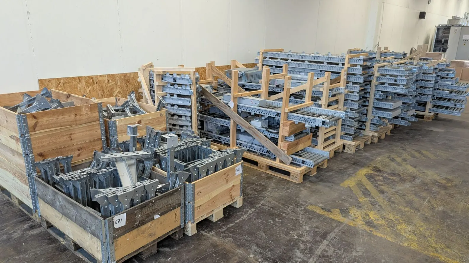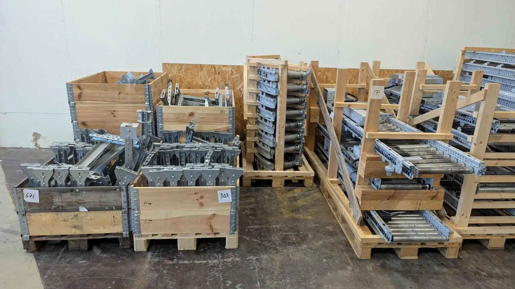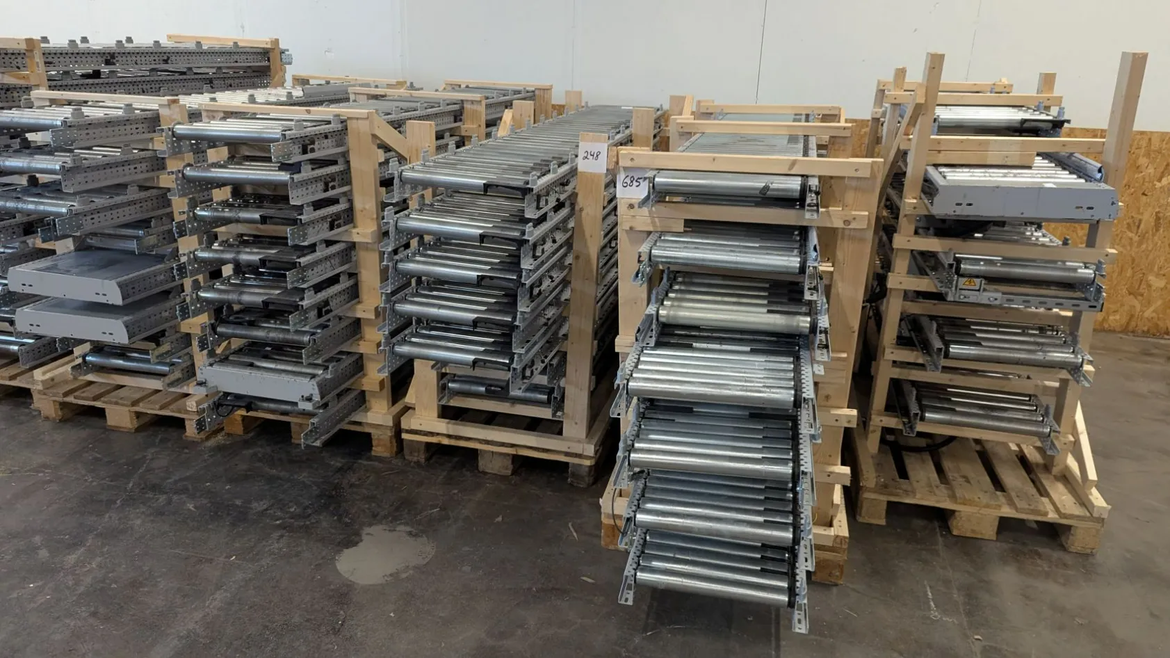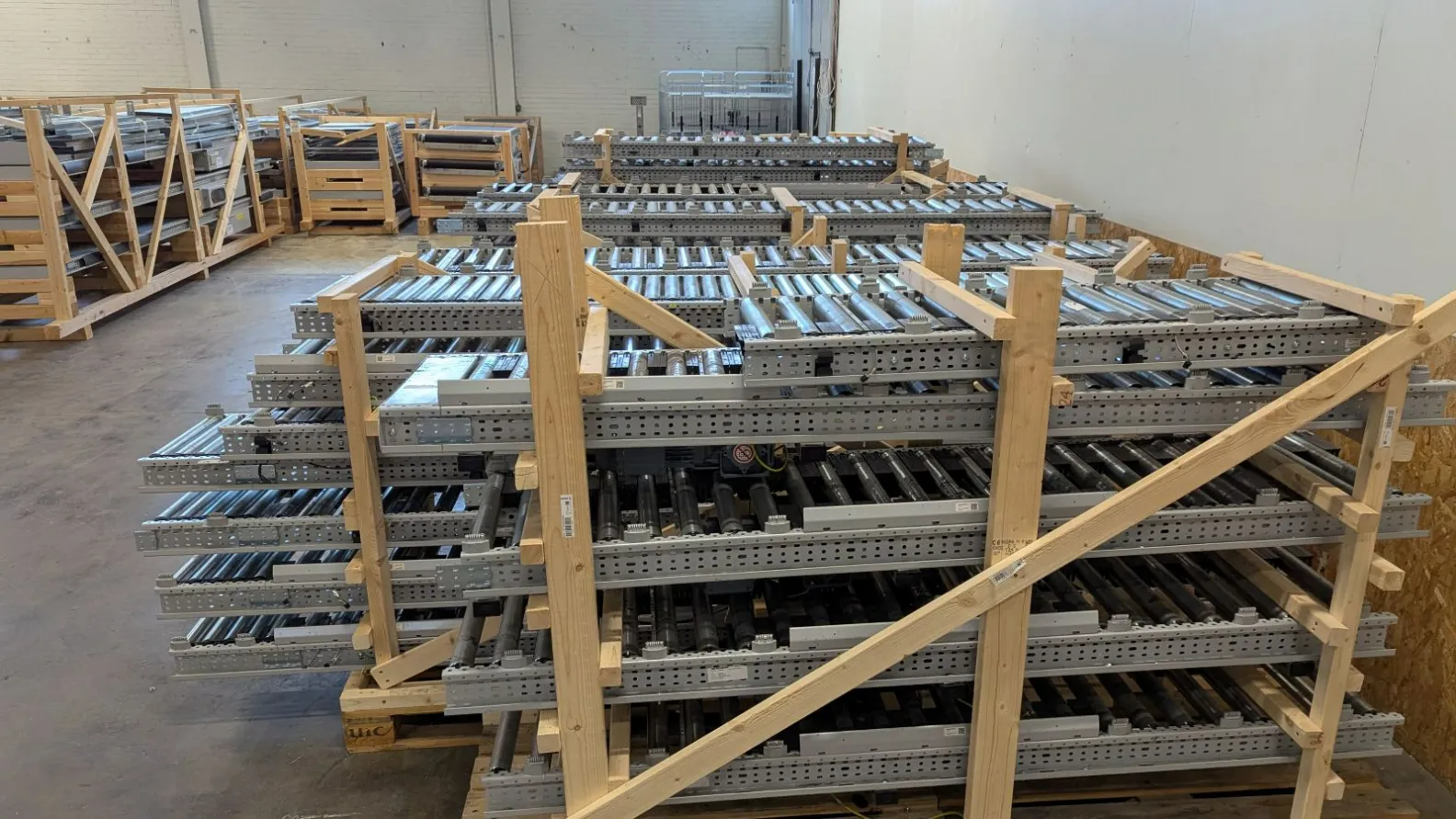 - 6 pall med raka drivna rullbanor (sektioner ca 2000–3000 mm långa)