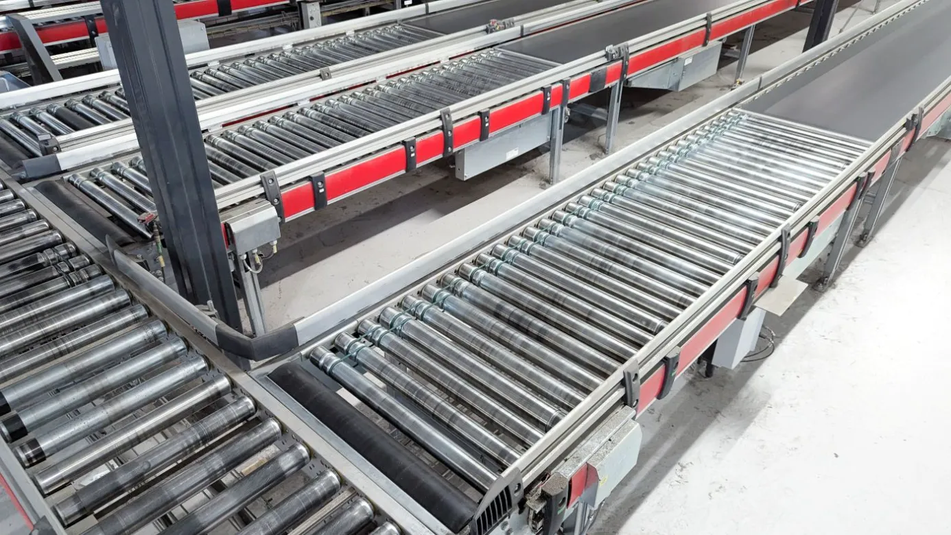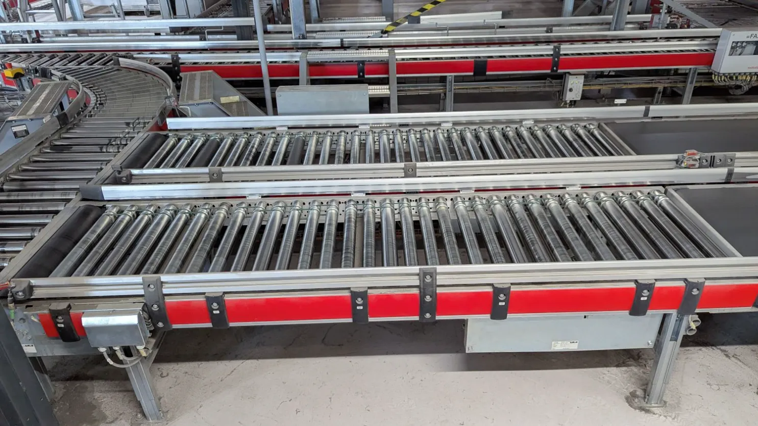 Parti om sex drivna rullbanor från Swisslog, vardera 2 300 mm långa och 600 mm breda.