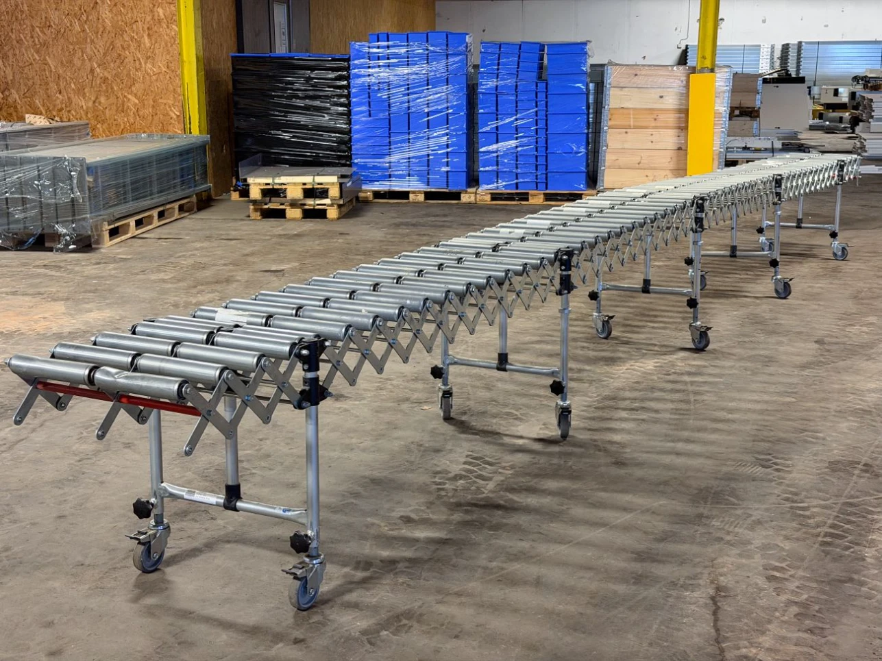 Denna odrivna saxbana är en riktig problemlösare för lagret, med en flexibel räckvidd från 3,2 meter upp till hela 7,5 meter i utfällt läge. Den smarta "dragspelskonstruktionen" gör att ni kan svänga och forma banan precis efter behov – perfekt för att runda pelare eller nå djupt in i en container vid lossning.