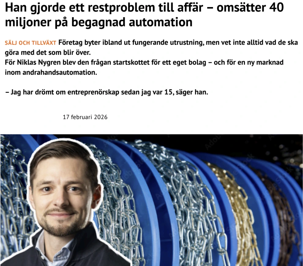 När VD-tidningen uppmärksammar Relevators vd Niklas Nygren är det inte bara en entreprenörsresa som lyfts fram utan också hur en ny affärslogik inom begagnad lagerautomation har vuxit fram. Artikeln beskriver hur Relevator har varit med och etablerat en strukturerad internationell marknad för företag som vill köpa och sälja begagnad lagerautomation.